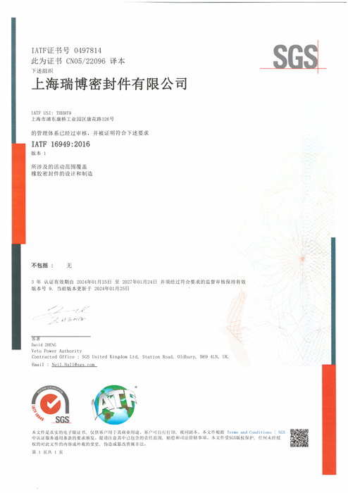 上海瑞博密封件有限公司是專業生產油封等橡膠密封件的工廠,專業生產旋轉和往復油封。旋轉油封如傳動軸、齒輪箱、油脂密封、發動機曲軸、耐高壓(液壓泵、液壓馬達、動力轉向器)、耐水泥(重型卡車軸、農業機械軸)等油封;往復油封如動力轉向器、減震器、汽門桿等油封,廣泛應用與汽車、摩托車、工程/農業機械、清潔機械等機電行業。上海瑞博密封件有限公司 貫徹 IATF 16949 質量體系。